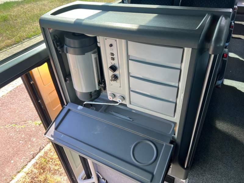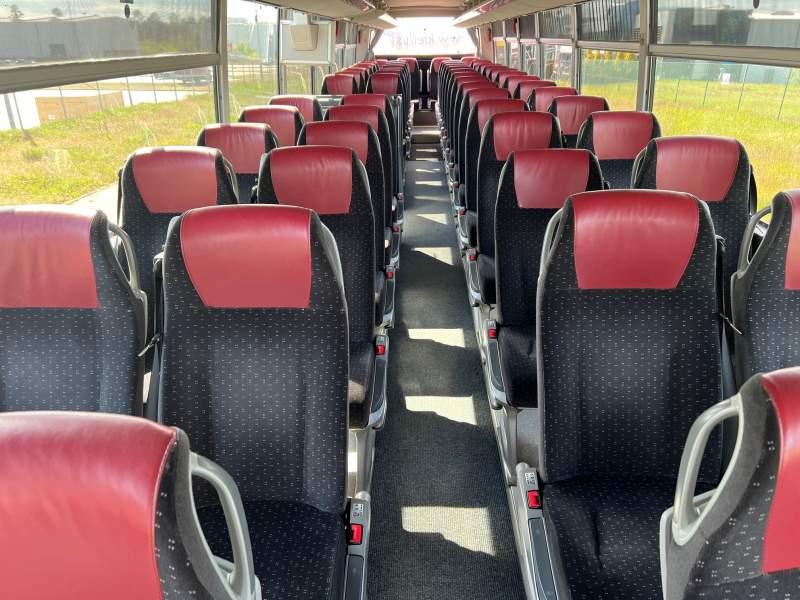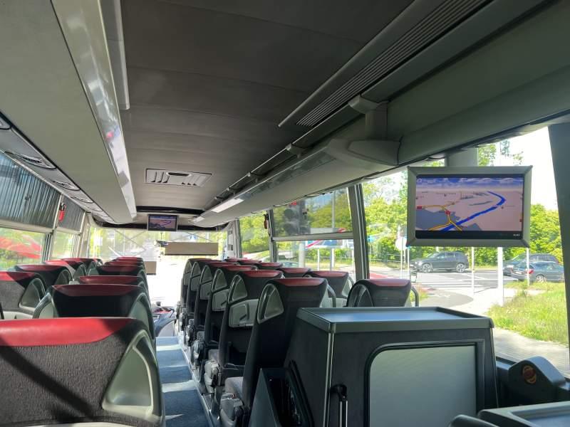 Wyposażenie: video, WC, lodówka, caffebar, kabina sypialna, fotele odchylane, oświetlenie indywidualne, nawiewy dyszowe, siateczki, ABS, ASR, tempomat, retarder, telefon, nawigacja, CD, podnóżki, stoliczki, mikrofon, klimatyzacja, radio, regulacja wysokości nadwozia, centralny zamek, podwójne szyby boczne, wspomaganie kierownicy, elektryczne lusterka, fotele odchylane i rozsuwane, DVD, ogrzewanie stacjonarne, ESP